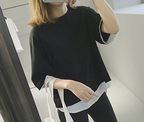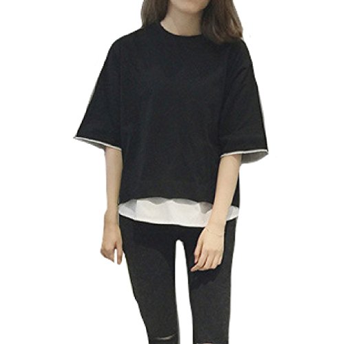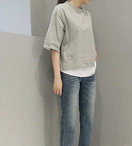 -. Title : 【 Big laugh 】 半袖 レディース BIG Tシャツ 重ね着風 フェイク シャツ プルオーバー 無地 カットソー カジュアル