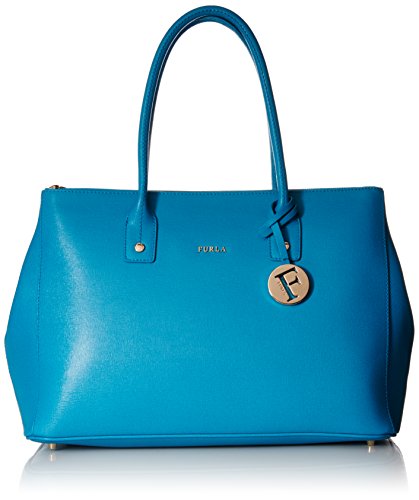 Linda Medium Carryall with magnetic closure, 2 large double zip pockets on both exterior sides, 2 interior zipper pockets and 2 open pockets, expandable sides, 100 percent leather, made in Romania, removable exterior Furla charm.