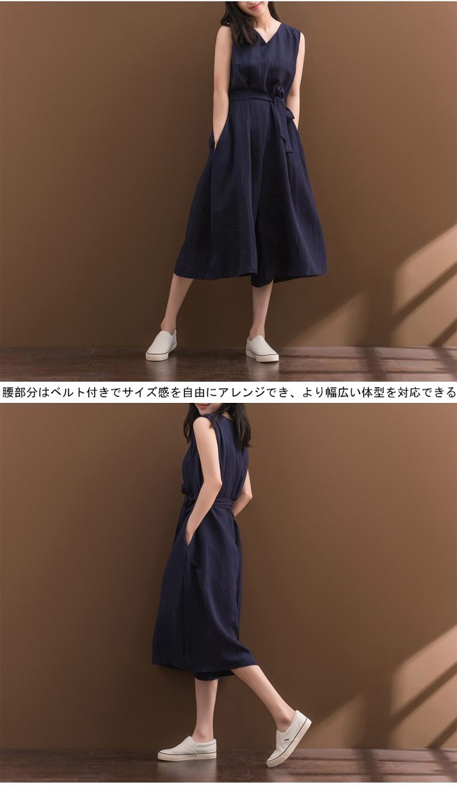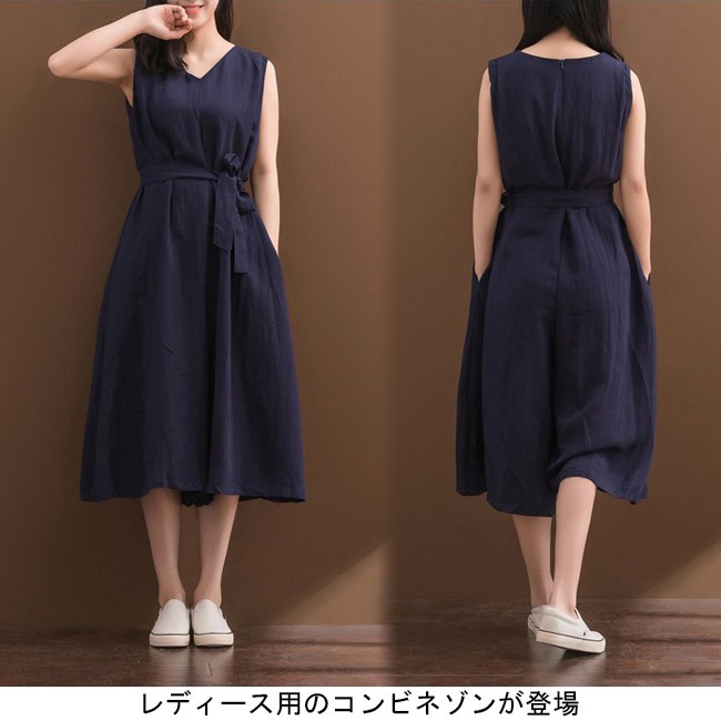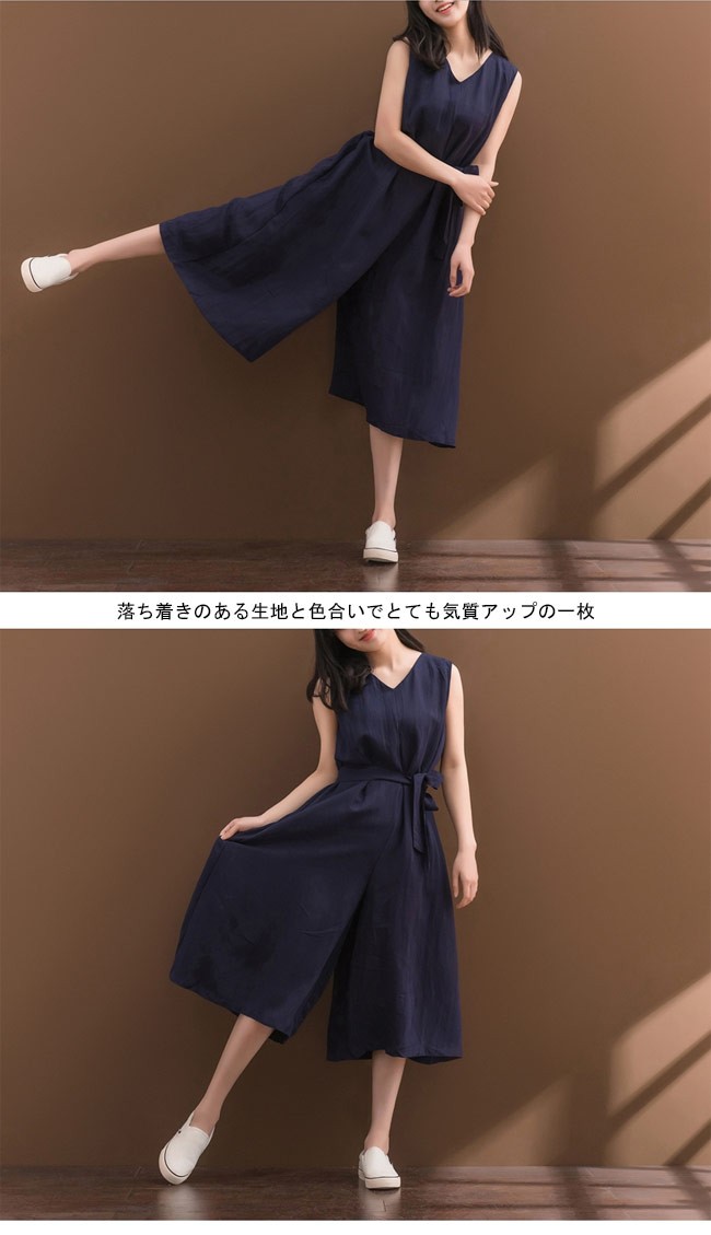 レディース コンビネゾン ノースリーブ 七分丈パンツ オーバーオール ゆったり オールインワン 女性用 つなぎ 体型カバー Vネック ワイドパンツ カジュアルレディース用のコンビネゾンが登場上半身はノースリーブ仕様に下半身は七分丈ワイドパンツ仕様で解放感たっぷりの着心地腰部分はベルト付きでサイズ感を自由にアレンジでき、より幅広い体型を対応できるゆったりとしたシルエットでカジュアル感を演出、体型カバーも果たせる大きめの裾幅でロングスカートの甘さとパンツの安心感兼ね備える落ち着きのある生地と色合いでとても気質アップの一枚カラー:写真色素材 綿混紡サイズ(cm) M L XL 2XLM バスト92 総丈115 ヒップ138L バスト96 総丈116 ヒップ139XL バスト100 総丈117 ヒップ1402XL バスト104 総丈118 ヒップ141ご注意:※サイズは平置きサイズです。素人採寸ですので、若干の誤差がございます、ご了承ください。