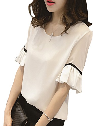 -. Title : 【 Big laugh 】 レディース トップス シフォン ブラウス カットソー 半袖 無地 きれいめ フレア おしゃれ 人気