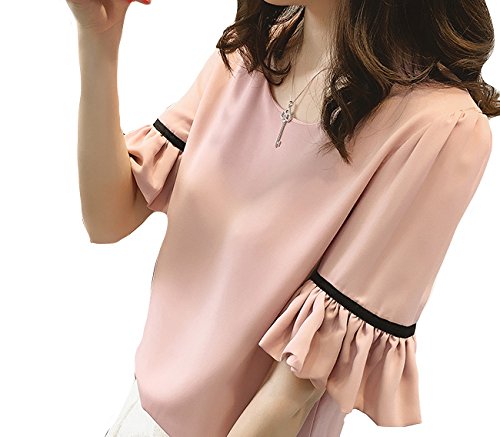 -. Feature : 【 Big laugh 】 レディース トップス シフォン ブラウス カットソー 半袖 無地 きれいめ フレア おしゃれ 人気 / 袖口のギャザーとフリルがポイントのトップスです♪シフォン素材で3シーズン着ることができますよ◎スカートやデニムに合わせて大人カジュアルなコーディネートを楽しむことができます。上品なデザインなのでもちろんオフィスにも合います◎幅広く着こなせるので重宝すること間違いなしのブラウスです♪ / カラー : ホワイト ピンク / 【M】 着丈 60.0cm、 胸囲 92.0cm、袖丈 31.0cm、肩幅 34.0cm 【L】 着丈 61.0cm、 胸囲 96.0cm、袖丈 32.0cm、肩幅 35.0cm 【XL】 着丈 62.0cm、 胸囲 100.0cm、袖丈 33.0cm、肩幅 36.0cm 【XXL】 着丈 63.0cm、 胸囲 104.0cm、袖丈 34.0cm、肩幅 37.0cm / その他、カラーございますのでご覧ください。サイズ、カラーのタブをクリックしてくださいね♪