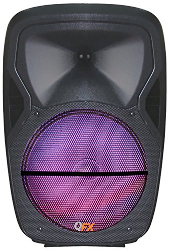 -. Binding : Electronics -. Brand : QFX -. Color : black -. EAN : 0606540031322 -. Feature : FM radio and USB/SD Player with remote control / 15 inch woofer with RGB LED moon light is protected with a metal grill cover / Bonus tri-pod stand is included / Microphone and guitar input and RCA in/output / Built-in 12 volt 7.5Ah rechargeable battery -. IsAdultProduct : 0 -. IsEligibleForTradeIn : 1 -. Label : QFX USA -. Manufacturer : QFX USA -. ManufacturerPartsWarrantyDescription : Parts -. Model : PBX-61155 -. MPN : PBX-61155 -. PackageQuantity : 1 -. PartNumber : PBX-61155 -. ProductGroup : Speakers -. ProductTypeName : PORTABLE_AUDIO -. Publisher : QFX USA -. Studio : QFX USA -. Title : QFX PBX-61155 Bluetooth Portable Party Speaker -. UPC : 606540031322