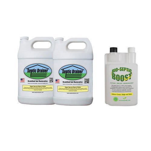 -. Title : Septic Drainer Field Maintenance Kit - Contains 2 Gal Septic Drainer (128 oz/gal $0.39/ oz), 1 quart BioSeptic Boost ($2.50/oz) - For repairing large residential septic systems, 1500 gallon tank