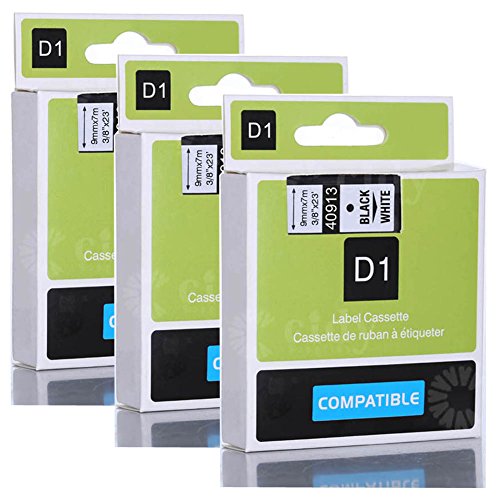 Wangsale Generic Replacement Label Tape Compatible for DYMO D1 40913 9mm x 8m 3/8" X 23 (3 PK Black on White)