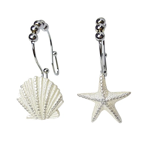 BLING DECORATIONS FOR BATHROOM - Elegant seashell starfishes nautical style hooks add charming look for your Bathroom, Baby room, Bedroom, Living room, and the gorgeous style is easy to match with any kinds of bathroom shower linen/curtain