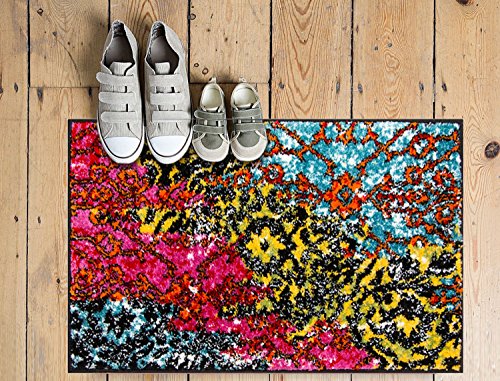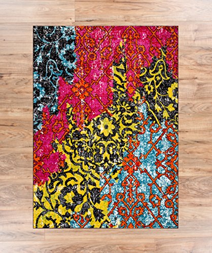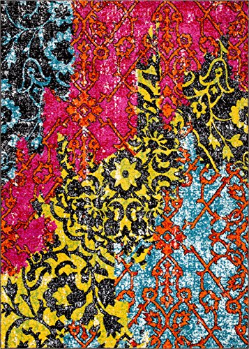 Treehouse Damask Multi is a super modern interpretation of a traditional style patchwork rug. Bright, multi-colored, floral pattern patches have a faded, distressed and vintage look. Vibrant, over saturated colors make this bohemian style a perfect addition to the contemporary space. A plush 0.5" pile of air twist frieze polypropylene gives an exceptional textured look. The yarn is soft, stain resistant, and doesn't shed or fade over time. A 100% jute backing is safe for wood floors and all four sides of the rug are serged for improved durability.Feature