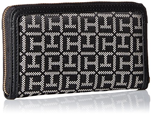 Tommy Hilfiger Signature Jacq Med Zip Wallet, Black/White, One Size