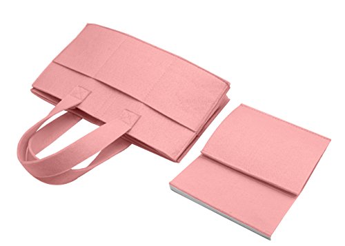 Made of high quality 100% felt (3mm non-woven). Includes 3 inside compartments with removable insert dividers and 8 outside pockets. Spot clean. (NOT Machine Washable). Baby Items NOT INCLUDED. Measures approximately 13" L x 9" W x 7" H (with handle 13.50")