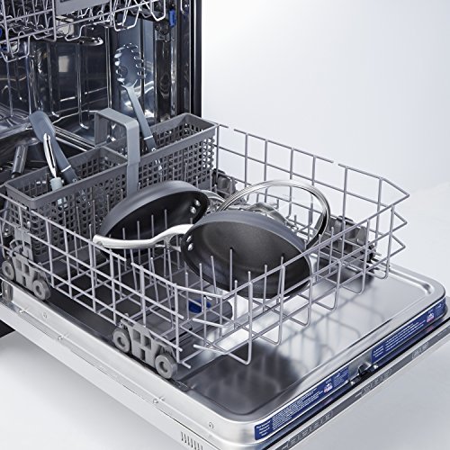 Heavy-gauge aluminum construction ensures even heating and is hard-anodized for durability. It also makes it dishwasher-safe.