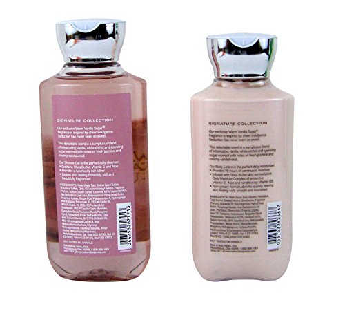 -. Binding : Misc. -. Brand : Bath & Body Works -. Color : Green -. EAN : 0700667857534 -. Feature : Bundle includes 2 products: Warm Vanilla Sugar Shower Gel and Warm Vanilla Sugar Body Lotion / Warm Vanilla Sugar Shower Gel is a skin-loving combination of Aloe Vera, Vitamin E and Shea Butter / Warm Vanilla Sugar Body Lotion is an enhanced lotion fortified with Vitamin E and Vitamin B5 / Shower Gel and Body Lotion are presented in a silver gift bag / Shower Gel is 10 Fl oz/295 ml; Body Lotion is 8 Fl oz/236 ml. -. Label : Bath and Body Works -. Manufacturer : Bath and Body Works -. MPN : Bat-9984 -. PackageQuantity : 1 -. PartNumber : Bat-9984 -. ProductGroup : Beauty -. ProductTypeName : BEAUTY -. Publisher : Bath and Body Works -. Studio : Bath and Body Works -. Title : Bath & Body Works Warm Vanilla Sugar Gift Set Bundle of 2 Items: Shower Gel and Body Lotion -. UPC : 700667857534