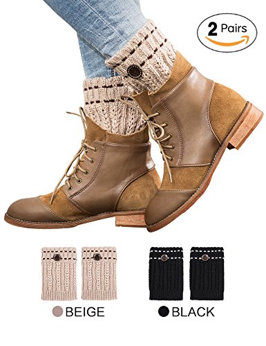 -. Title : Womens Short Boot Cuffs 2 Pack Cable Knit Leg Warmer Winter Crochet Button Toppers