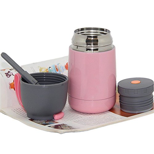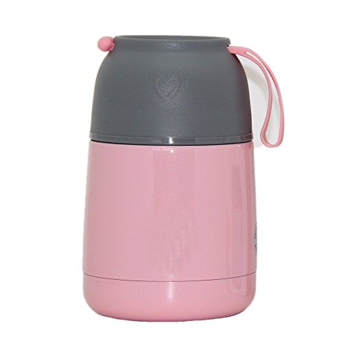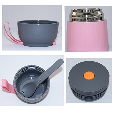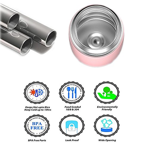 Vacuum Insulated Food Jar 21oz Stainless Steel Thermos Flask with Folding Spoon (Pink)