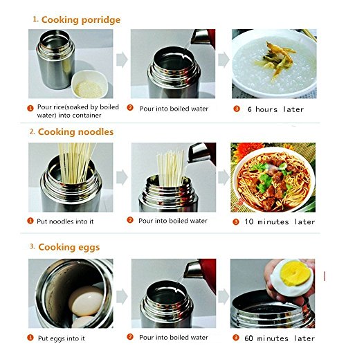 - EASY USAGE: As an insulated lunch box, mug. Pouring boiling water in it, you can boil porridge or egg and other food. The lid can be used as a bowl.