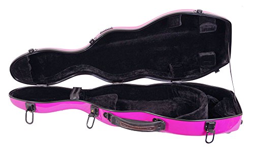 -. Feature : Trendy new fiberglass exterior with high gloss finish / Two convenient bow holders, Leather subway handle / Small rosin pouch on the inside of the case / Comfortable back-pack straps, Sturdy metal latches / 4/4 only