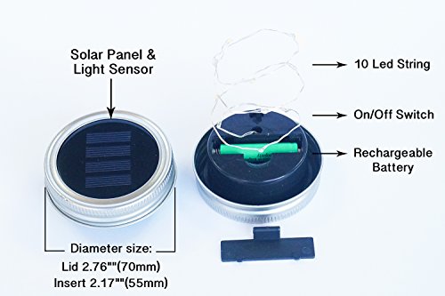 - SCREW EASILY - Solar Mason Jar Lids Fits for most regular mouth mason jar, just put the solar lid with string lights into the jar and turn the switch on. Enjoy a great atmospehere wherever you want.