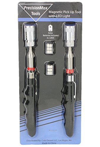 Magnetic Pickup Tool - LED Light Telescoping Handle Pick up Magnet with 8 Lb Lift Capacity by PrecisionMax Tools (Two Pack)