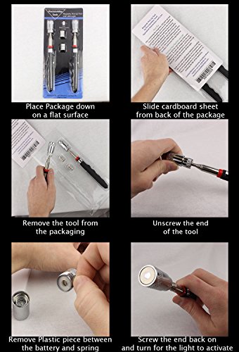 - LONG TELESCOPING AND GRIP HANDLE - Grab objects in hard to reach (and see) places--retrieve nails, bolts, screws, needles, staples