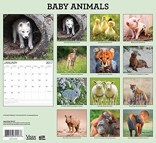 -. Binding : Office Product -. Brand : Leap Year -. EAN : 0709257562445 -. Feature : 2017 Calendar featuring beautiful full color photographed images for every month of the year. / Includes Holidays and Observances. / Keep your appointments and Birthdays organized in one place! / Perfect for office spaces, bedrooms, classrooms and more! / Makes a great gift for friends and family! -. Label : Leap Year -. Manufacturer : Leap Year -. MPN : 70147BA -. PackageQuantity : 1 -. PartNumber : 70147BA -. ProductGroup : Office Product -. ProductTypeName : OFFICE_PRODUCTS -. Publisher : Leap Year -. Studio : Leap Year -. Title : 2017 Monthly Wall Calendar - Baby Animals -. UPC : 709257562445