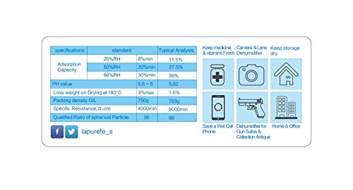 -. Brand : Lapurete's -. Feature : Lapurete's silica gel packets is regenerative.It can be dried for secondary use When you use it for quite some time. Therefore, the effect of buying one pack of our products can be equivalent to buy more than two packs of other desiccants. / A bag convenient for use desiccant and three pack Humidity Indicator Card are given away free. / High quality pure silica gel without cobalt chloride.Our desiccant was tested under strict regulation for Food & Medication.We can provide the quality report(SGS). / Packets come in re-close-able stand up foil pouch bag for easy storage and use. / If you have any Problems with Our Products, We will give you a Free Replacement or Full Refund. -. IsAutographed : 0 -. IsMemorabilia : 0 -. Label : LPTE -. Manufacturer : LPTE -. MPN : SGPD001 -. NumberOfItems : 35 -. PackageQuantity : 50 -. PartNumber : SGPD001 -. ProductGroup : BISS -. ProductTypeName : LAB_SUPPLY -. Publisher : LPTE -. Studio : LPTE -. Title : 【35 PACK】Lapurete’s 10 Gram Pack of 35 Silica Gel Packets Desiccant Dehumidifiers