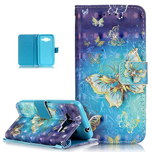 Galaxy Core Prime Case,ikasus Shiny Glitter Diamond Colorful Art Painting PU Leather Flip Wallet Pouch Stand Credit Card ID Holders Case Cover for Samsung Galaxy Core Prime G360F,Blue Yellow Butterfly