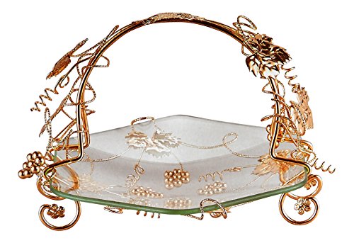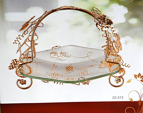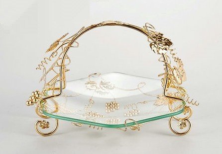 Decorative Glass Centerpiece Tray With Gold Leaf Metal Stand