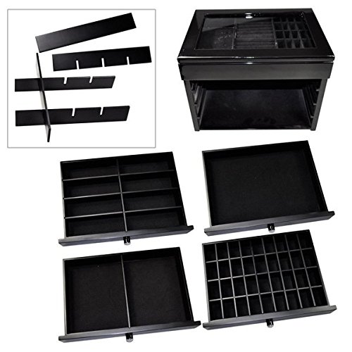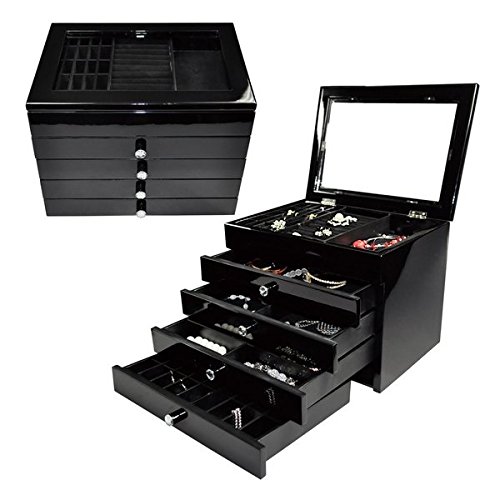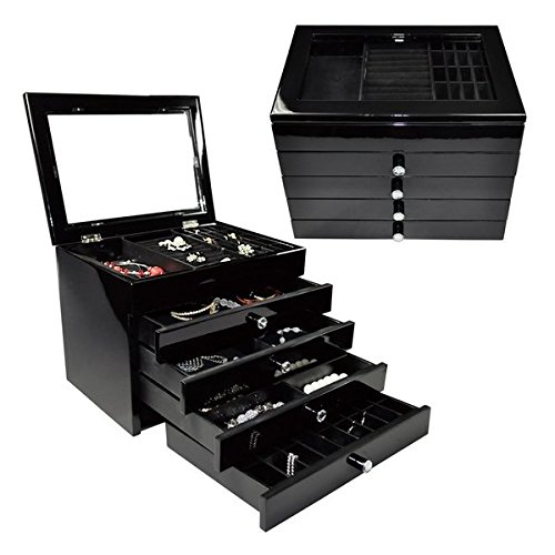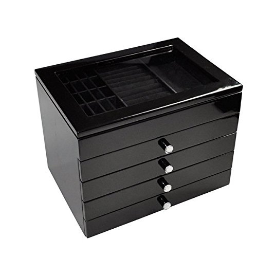 Studio : PH Publisher : PH Binding : Kitchen Product Description Full Fashion Gorgeous Trendy Black Solid Wooden Jewelry Chest High Gloss View Top Modern Design Beautiful Stylish Velvet Lining 4 Removable Drawers Easy Organizer Storage Box Accessorize In Style 0