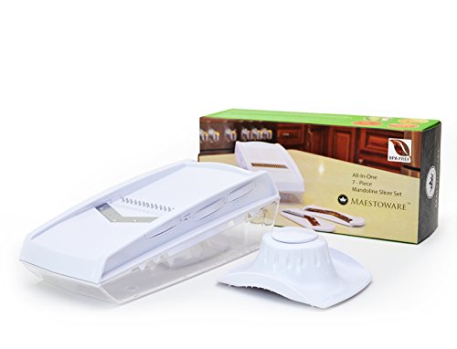 - Title : Maestoware® All-In-One 7PC Mandoline V-Slicer Set with Container - Kitchen Gadgets for Food Slicer, Vegetable Slicer, Crinkle Cutter, Grater, Julienne Cutter, Fruit Slicer and Onion Dicer