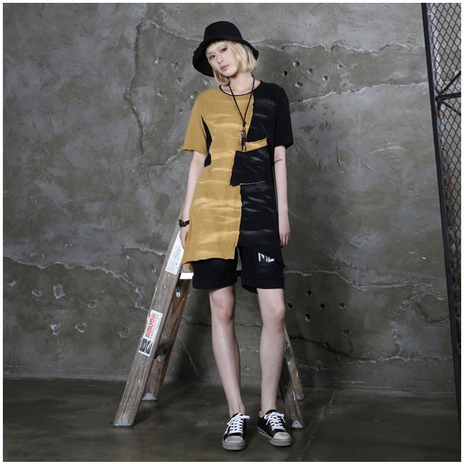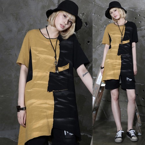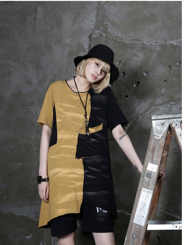 商品名:ワンピース レディース 半袖 切り替え 個性的 半袖 夏 2018 モード系 個性的 40代 ファッション