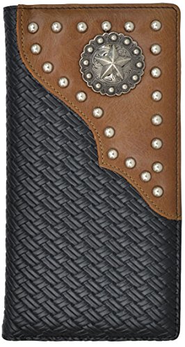 Product DescriptionBlack basketweave embossed faux leather wallet with brown faux leather corner overlay0