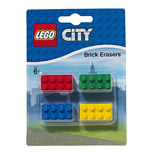-. Title : L.E.G.O City Brick Erasers Assorted Colours 4 Pack