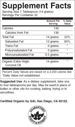 Swanson Certified 100% Organic Extra Virgin Coconut Oil 1 lb (454 grams) Solid Oil