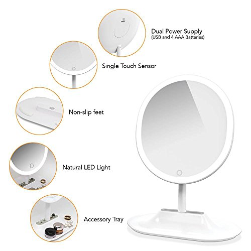 ADJUSTABLE LED LIGHTING: Adjust the led brightness through long press the circle on the mirror. It can perfect meet the required brightness without dazzling eye strain and you can use it either on day or night. No need to worry about the replacement of the light beads because it is equipped with 16 durable LED light beads with a life span of 50000 hours nonstop, lasting up to 5 years of continuous use.