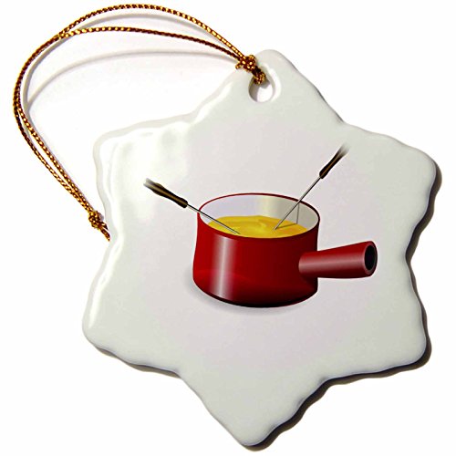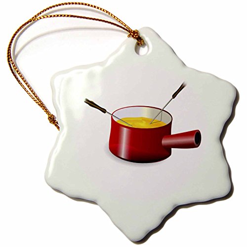 3dRose orn_41654_1 Retro Fondue Pot with Cheese Snowflake Decorative Hanging Ornament, Porcelain, 3-Inch