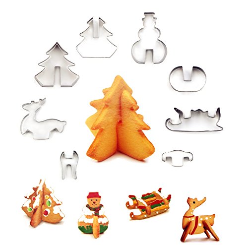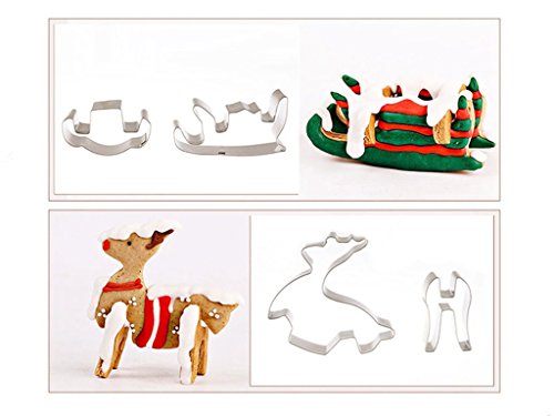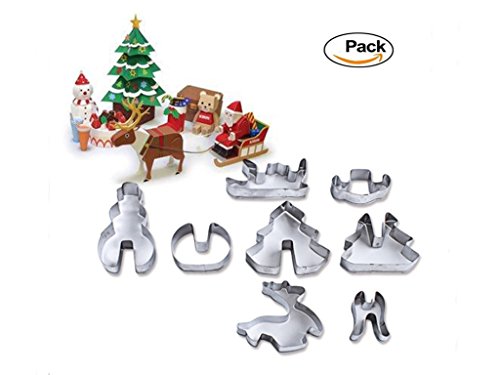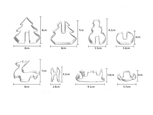 - 8pcs cookie cutters are perfect for making cakes, bread, biscuit, cookies, chocolate,which can make your dessert more unique and compelling with this Christmas tree, Snowman, Sleigh, Reindeer shape cookie cutter.