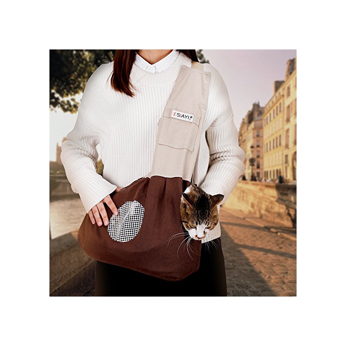 SIAYI(하여 사랑) 애완동물 백 백스 링 묘개용 가방 어깨에 비스듬히 매는 백 아웃도어 여행 외출 편리 애완동물 동반 밥데자인 환기성 고정 훅 부착 포켓 첨부 와 도그 백