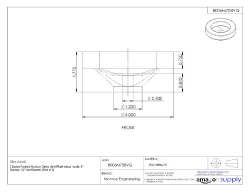 2 Spoked Polished Aluminum Dished Hand Wheel without Handle, 4" Diameter, 1/2" Hole Diameter, (Pack of 1)