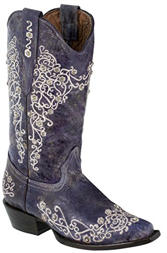 Binding : Apparel Product Description Introducing the Texas Legacy Stella Western Boot Collection, a hand crafted masterpiece built for comfort and durability. Along with an elegant embroidered finish, this is a must have boot for any cowgirl. These boots feature genuine leather shafts uppers (vamps), welt stitched full leather soles that are reinforced with wood pegs and solid brass nails for durability. Stacked leather heels, full leather linings, and our Cushion Comfort Sole System (CCSS) deliver maximum comfort. 0