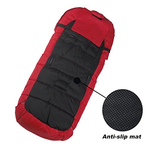 PRACTICAL DETAILS MAKES US BETTER THAN OUR COPETITORS: ①To keep the head warm while sleeping, the head area can be pulled into a hood or you can leave it open for more space. ②The little bag helps you for storage. ③The winter pack is machine washable at 40 degrees ④The dirt protection: in the foot area keeps the footmuff inside clean longer. And has bottom zipper to open and close for better temperature control and dirt cleaning. ⑤Darkness Safty Design : The bright reflective strip helps you to be safety and seen better in the dark. ⑥Age recommendation: approx. 6 to 36 months
