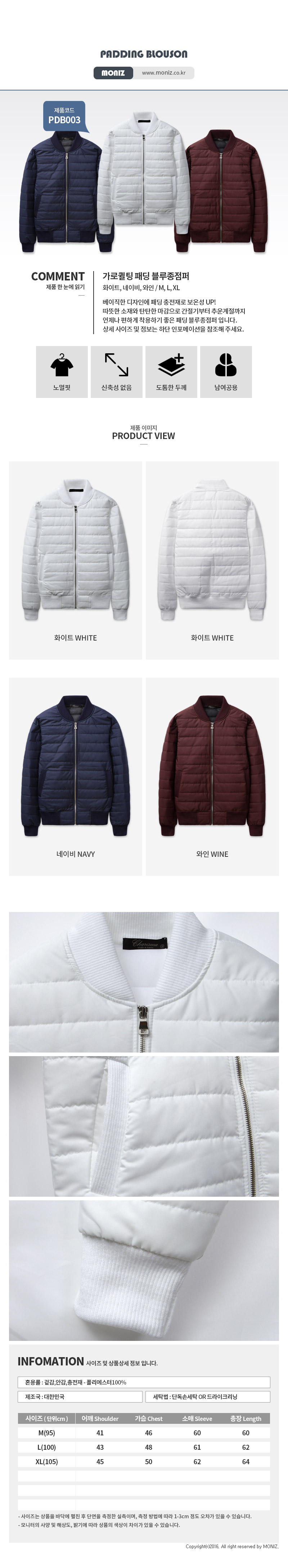 [Moniz] quilting padding blouson jumper PDB003
