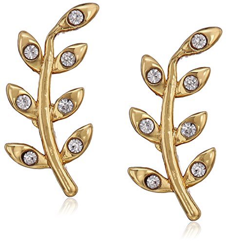 Gold or rhodium plated stud earrings with olive branch motif and pavé