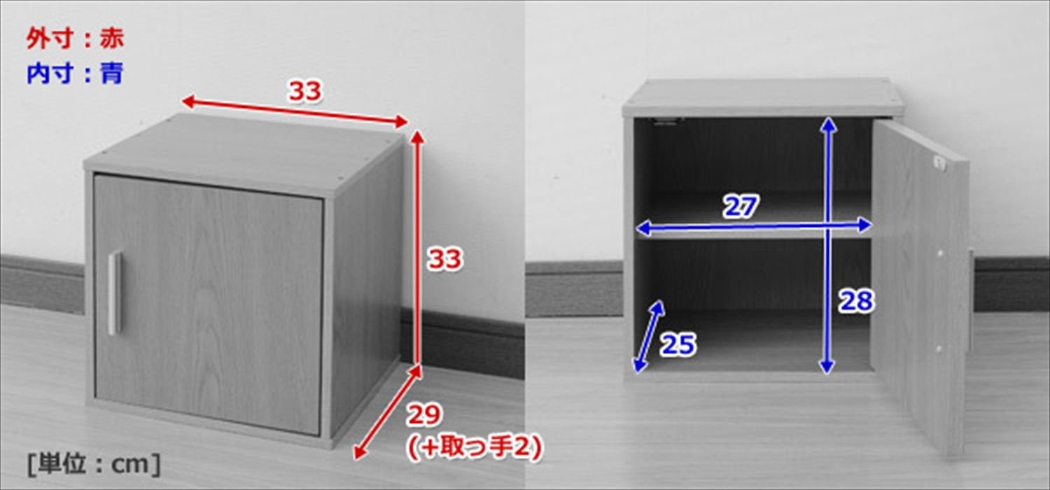Inside dimension: Width 27 Length 25 Height 28 cm ● 1 movable shelf board (about 3 cm spacing, adjustable in 5 steps) ● Shelf uppermost stage Inside Dimension Height: 4.5 cm ● Shelf Lower Floor Inner Dimension High