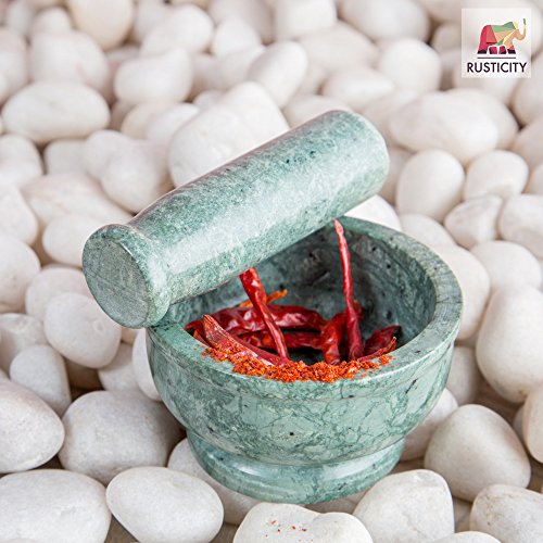 Studio : Rusticity Publisher : Rusticity Binding : Kitchen Product Description When it comes to essentials, one barely has time to pay attention to details. However, that shouldn't stop you from decorating your kitchen cabinet with items which hold great utility but also comes with an aesthetically pleasing design. The Rusticity Marble Mortar and Pestle set is characteristic of a rich dense body and a smooth, cool finish from marble, and its speciality lies in the baroque hand-carvings in the mortar which are the outcome of months of passionate hard work by rural artisans from remote villages in India. A perfect accessory to possess in your kitchenware collection.