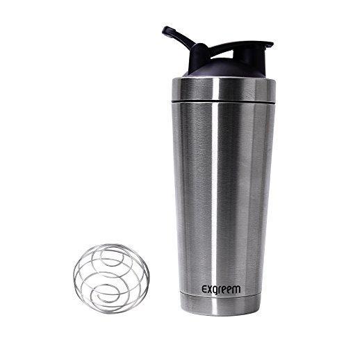 Shaker Bottle Exgreem 26oz Top Stainless Steel Insulated Water Bottle Protein Mixing cup - Holds Ice for more 30+ Hours (26 oz)
