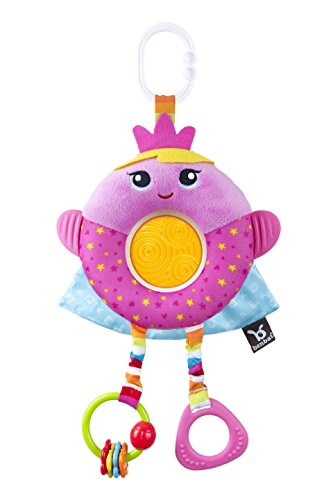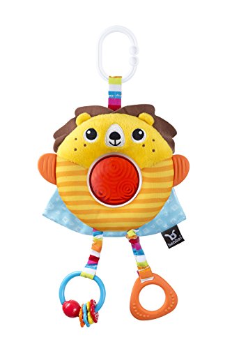 Unique shaped clip easily attaches to car seats and strollers so that toy is always FRONT front