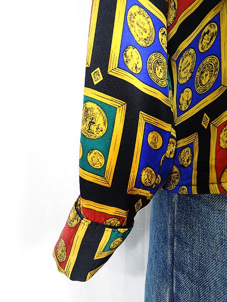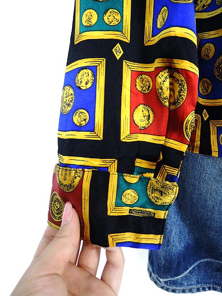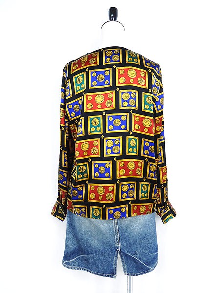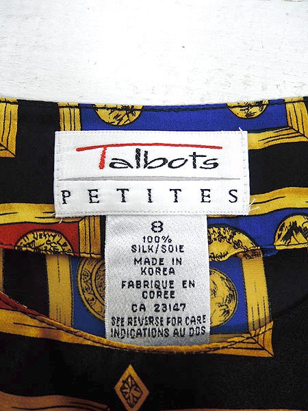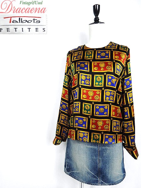 Ladies ブランドTalbots タルボット カラー黒ベース・赤・緑・青・黄 メール便不可 コンディション★★★ モデル- 素材シルク100% 表記サイズ8 スタッフコメント右袖上部に素材ヨレあり。袖口はカフスボタンのデザインです。 実寸サイズ 着丈 60 cm 身幅 49 cm 肩幅 39.5 cm 袖丈 56.5 cm ※ウエスト・ヒップ以外は平置き採寸