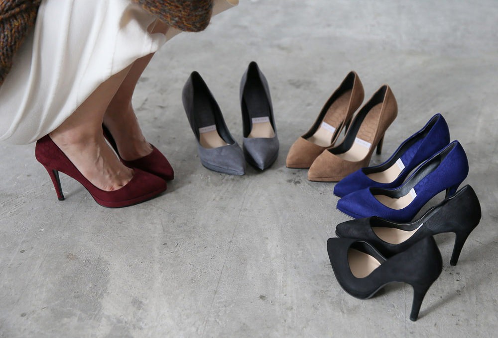 レディースファッションの婦人靴(レディースシューズ)の分野でパンプスは代表的なカテゴリー。スニーカー、ミュール、サンダルなど数かあるレディスファッションシューズの中でも最もスタンダードな種類で痛くないフラット(ぺたんこ)やピンヒール、ローヒール、オープントゥ、ストラップ、太ヒール、厚底、ポインテッドトゥ、バイカラー、リボン付きや、ひょう柄、メッシュなど種類や形状も多く存在し最も女性らしさを引き立て世界で多くの女性に愛されています。