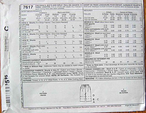-. Title : McCall's 7617 Sewing Pattern ~ Children's, Boy's, Girl's 1 Hour Pull-on Shorts in Three Lengths, Size Small 5-6
