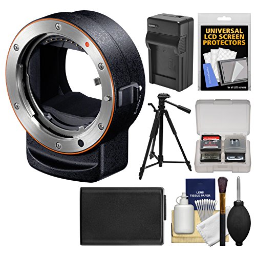 Kit includes: ? 1) Sony Alpha LA-EA3 Adapter (Attach A-mount Lenses to E-mount Full Frame Camera) ? 2) Spare NP-FW50 Battery for Sony ? 3) Battery Charger for Sony NP-FW50 ? 4) Precision Design PD-58PVTR 58" Photo/Video Tripod with Case ? 5) Precision Design 6-Piece Camera Lens Cleaning Kit ? 6) Precision Design 8 SD / 2 MicroSD Memory Card Case ? 7) Precision Design Universal LCD Screen Protectors The Sony Alpha LA-EA3 Lens Adapter allows Alpha A-mount lenses to be used with Alpha E-mount full frame camera bodies. This adapter features Auto Exposure support with aperture mechanism. It can also be mounted to any standard tripod. Increase your shooting capacity with this powerful NP-FW50 Lithium-ion rechargeable battery. This Rapid Multi-voltage Charger plugs directly in to your wall outlet or your car's 12V outlet, and charges your battery in approximately 60 to 90 minutes. Avoid camera shake and achieve maximum image quality by setting your camera on this sturdy, lightweight 58-inch tripod. This 6-piece cleaning kit contains everything you'll ever need to properly clean your lenses, including a Hurricane Air Blower, Lens Cleaning Tissues, Lens Cloth, Lens Cleaning Liquid, Brush and Cotton Swabs. The Precision Design Memory Card Case provides protection for up to 8 SD/SDHC/SDXC memory cards. It also includes 2 adapters for holding microSD cards. These Precision Design Universal LCD Screen Protectors guard your LCD screen against scratches and wear, and reduce glare for enhanced viewing. Includes 3 sheets and squeegee card. 0 |