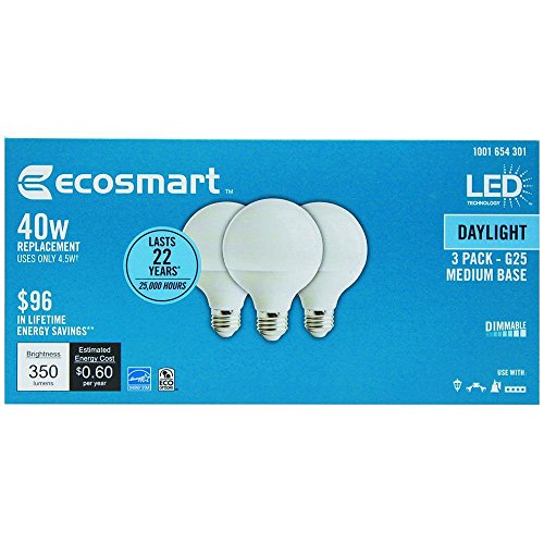 EcoSmart 40W Equivalent Daylight G25 Dimmable Frosted LED Light Bulbs Medium Base 3 Pack