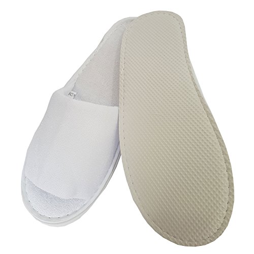 (CleanBay)/Nail Tools/Spa Slippers/DIRECT FROM USA/2 Pairs Open Toe Towel Terry Cotton Cloth Slippers Adults Unisex Indoor Slippers (White)